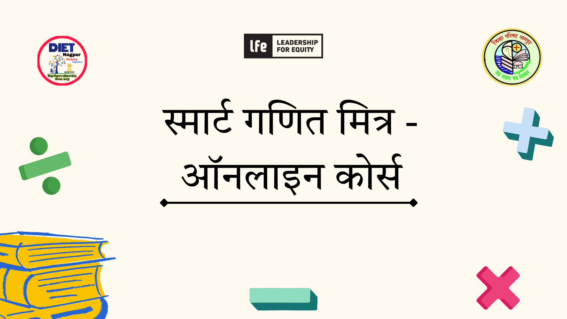 1. इयत्ता तिसरी ते पाचवीला गणित शिकविणाऱ्या सर्व शिक्षकांसाठी हा अभ्यासक्रम तयार केलेला आहे. या अभ्यासक्रमात दोन मॉड्यूल्स आहेत. हा अभ्यासक्रम पूर्ण करण्यासाठी तुम्ही दोन्ही मॉड्यूल्समधील सर्व घटकांचा अभ्यास पूर्ण करायचा आहे. यातील घटकांचा अभ्यास करत असताना तुम्ही मध्ये थांबू शकता आणि परत 'पुन्हा सुरू करा' या बटनाचा वापर करून अभ्यास पुन्हा सुरू करू शकता.